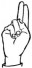 На ћирилици написано КОСТАДИН ТРАПИЋ састоји се из 14 слова [?]. Исписано ћириличном једноручном азбуком за глувонеме: